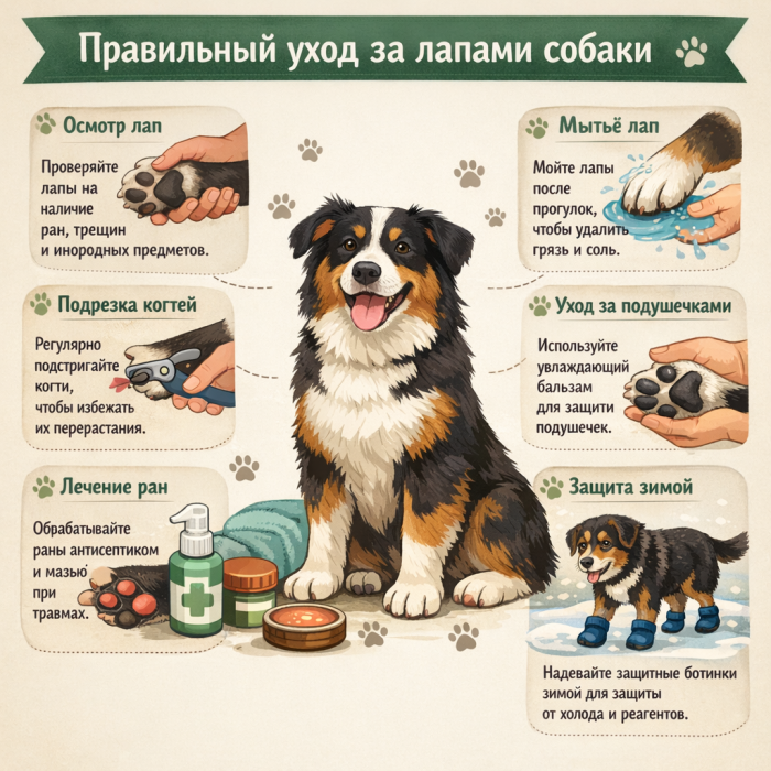 Разберем все по шагам: когти, подушечки, шерсть между пальцами и сезонный уход.